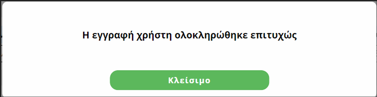 Μετά την επιτυχημένη εισαγωγή των απαραίτητων στοιχείων ο χρήστης θα λάβει το παρακάτω μήνυμα.