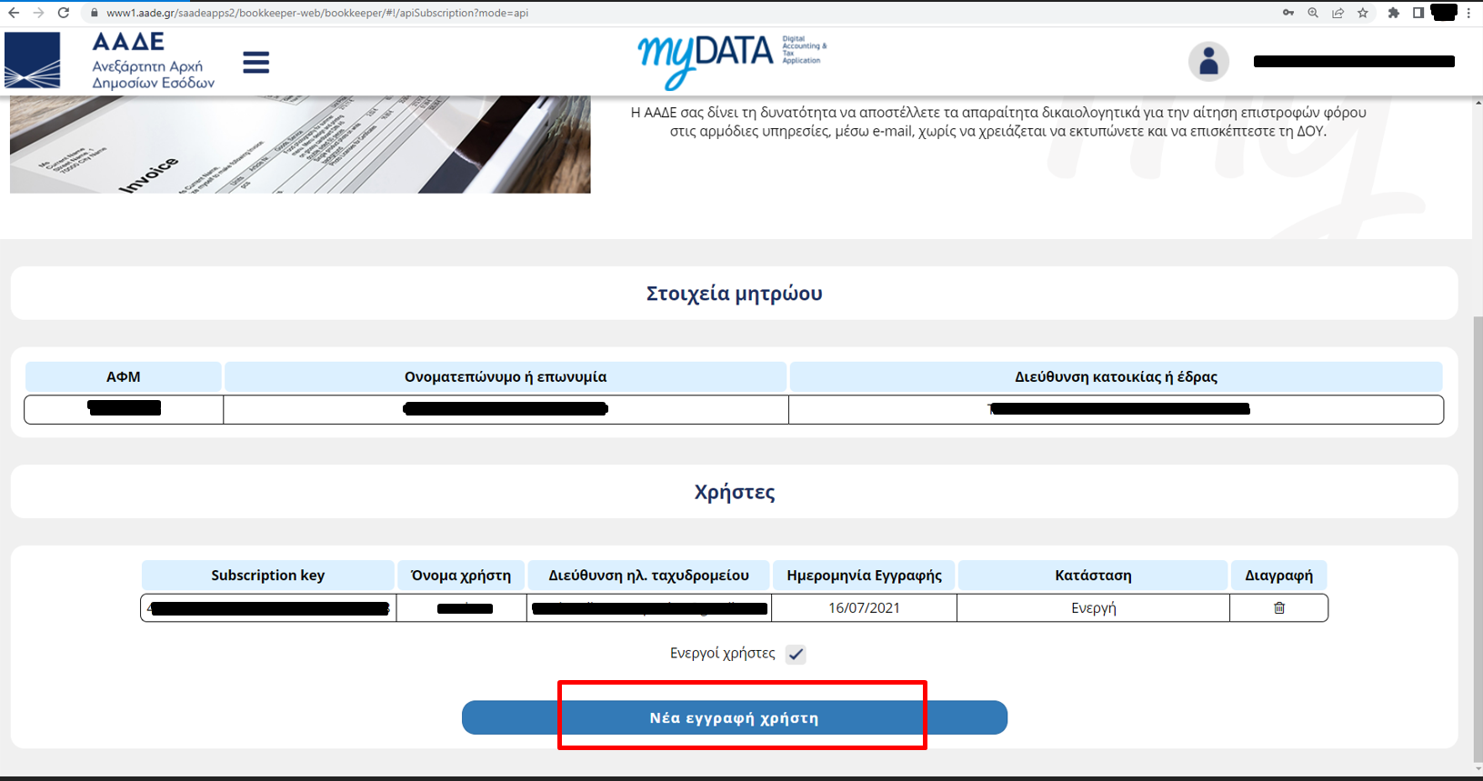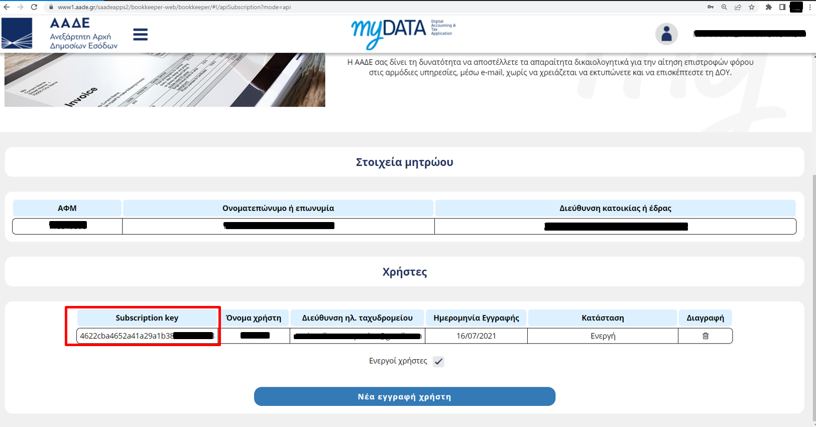 Για την επικοινωνία του εκάστοτε λογιστικού συστήματος με την ΑΑΔΕ είναι απαραίτητη η έκδοση subscription key.